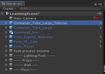 1. In the Learning Scene, select the Container_Tube_Large_Tutorial Prefab.