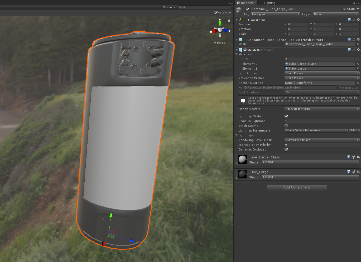 2. Open Container_Tube_Large_Tutorial in Prefab Mode and select the Container_Tube_Large_Lod00 GameObject.