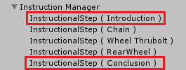 - Create an Empty GameObject, Name it “Instructional Step (Rearwheel)” and add an Instructional Step component to it