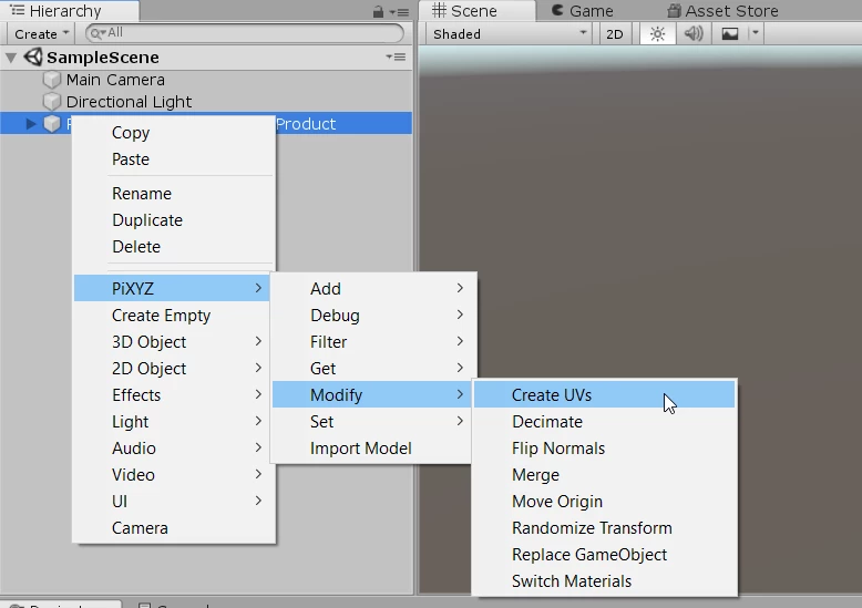 2. Add new UVs so we can add materials with textures (PiXYZ > Modify > Create UVs).