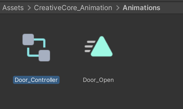 1. En la carpeta Animations, selecciona el Controlador de animador Door y cámbiale el nombre a "Door_Controller".