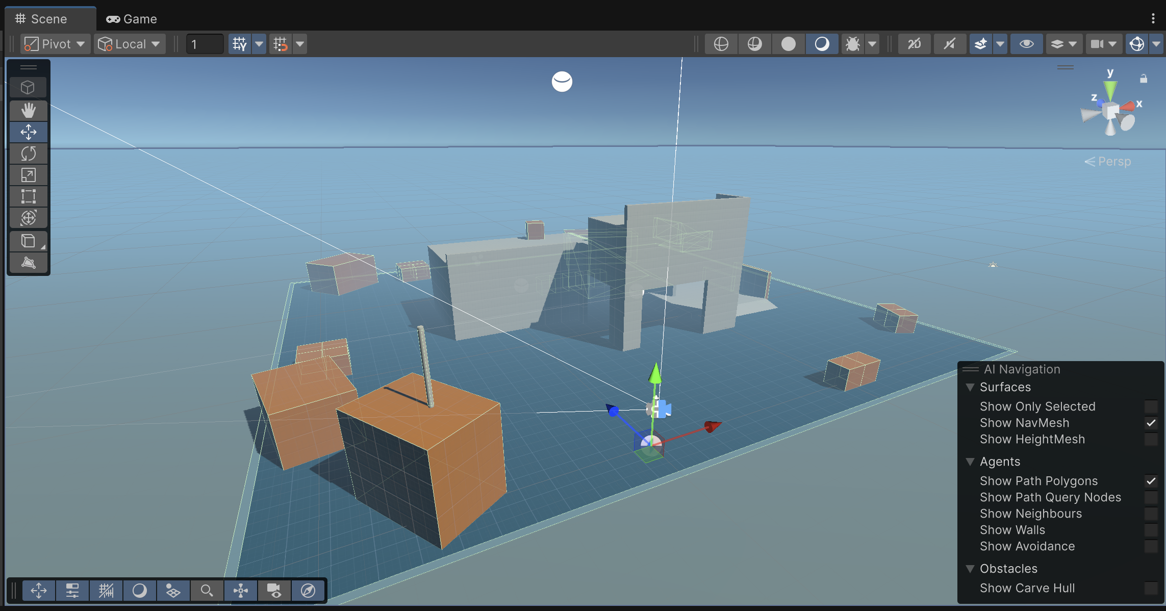 - Mantén la simplicidad y usa primitivos como marcadores de posición por ahora, en lugar de crear formas más complejas o importar recursos. Puedes utilizar un plano primitivo para el suelo.