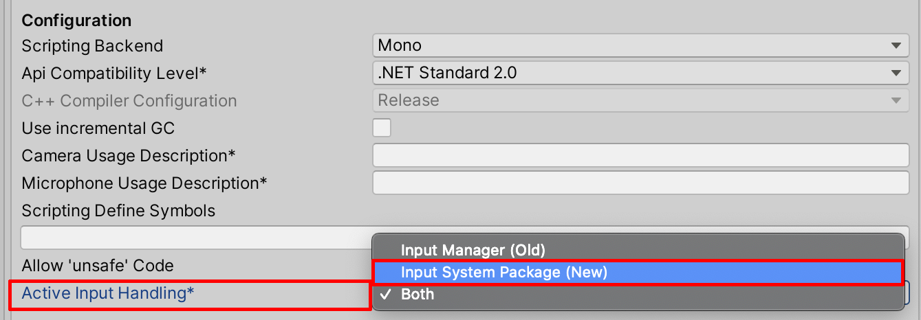 3. You can verify your Project’s newly installed Input System, by opening up the Project Settings. Select from the top dropdown menu Edit > Project Settings. In the left column, select Player. In the main window of the Project Settings Window, select Other Settings (Figure 02). Expand Other Settings, and scroll down to Active Input Handling. Select either Both, or Input System Package (New) (Figure 03).