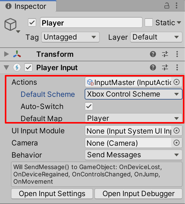 19. Next, assign the Default Scheme to the Xbox Control Scheme, and assign the Default Map to Player (Figure 18).