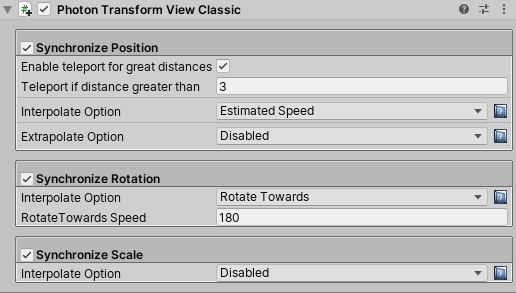 - Extrapolate Option: Disabled by default, this option allows Photon to attempt to predict the position of an observed Transform.