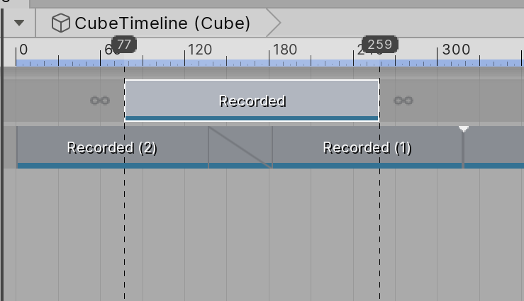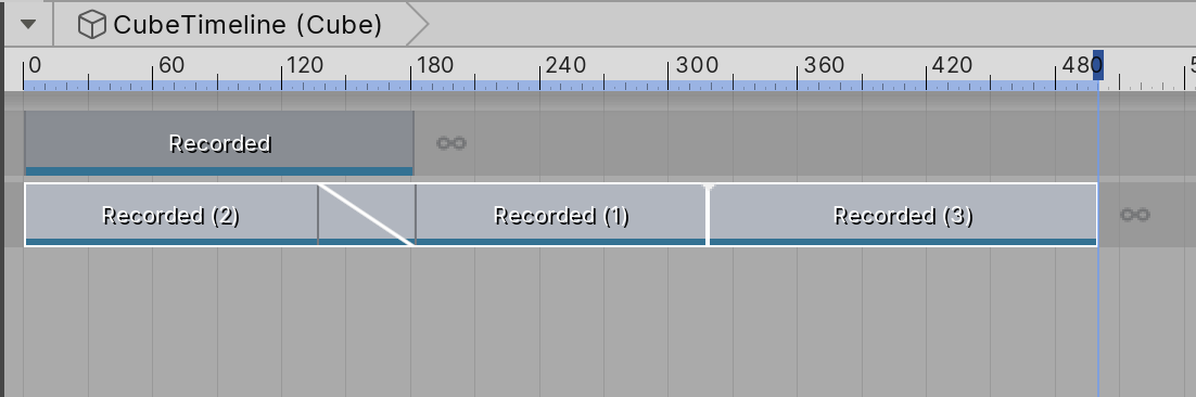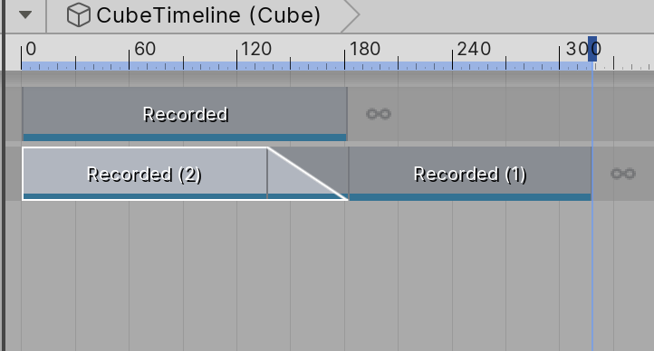 If a clip overlaps with another clip, the second clip will override the first. This works for Activation, Control, and Playable tracks. For animation tracks, animation override tracks, and audio tracks, the first clip will be blended into the second clip.