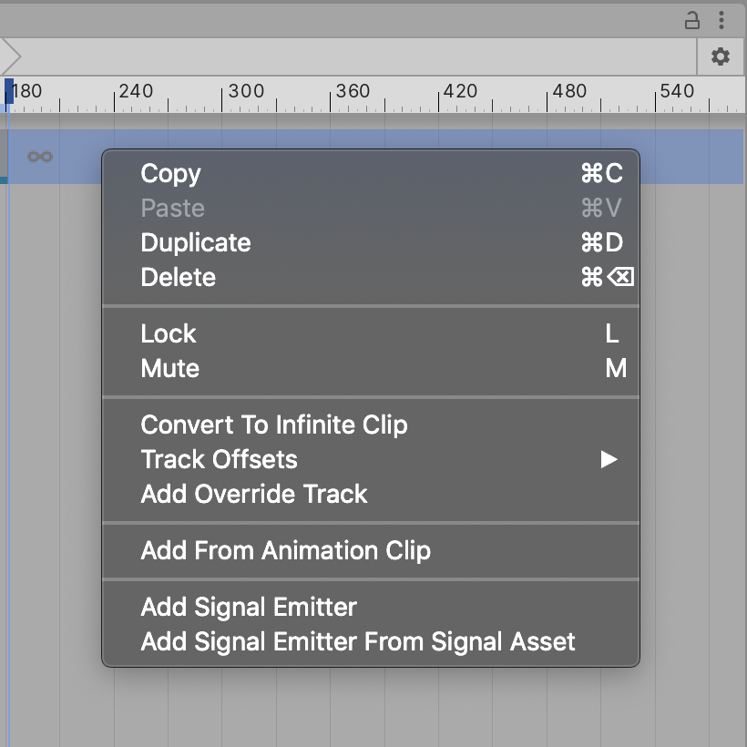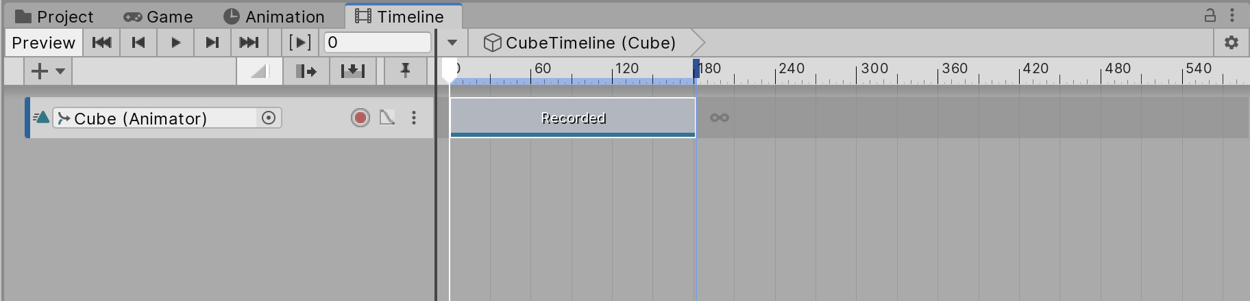 When you’ve recorded basic animation in the Timeline, it shows up as an animation track with your keyframes located within the track. This is often referred to as an Infinite clip, which cannot be positioned, trimmed, or split because it does not have a defined size. To manipulate the Infinite clip, you have to convert it into an animation Clip.