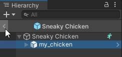 2. Drag and drop the “my_chicken” asset from the Project window to the Hierarchy of the Sneaky Chicken Prefab.