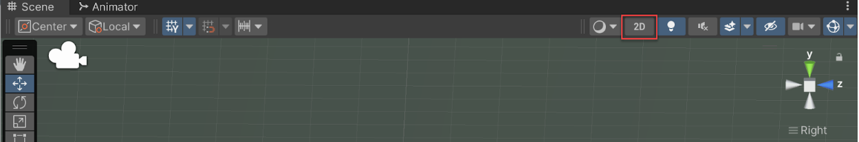 3. In the Scene view control bar, set the Scene view to 2D mode.