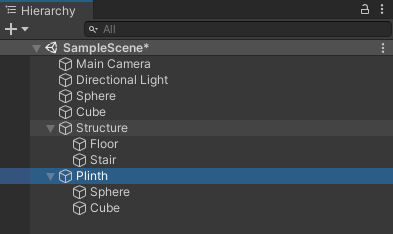 6. In the Hierarchy, select the parent GameObject of your feature and drag it on top of the Structure GameObject, to make the entire GameObject a child of Structure.