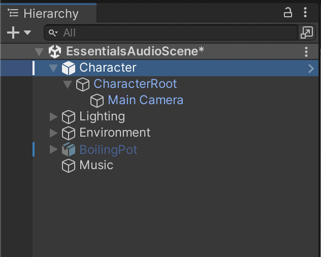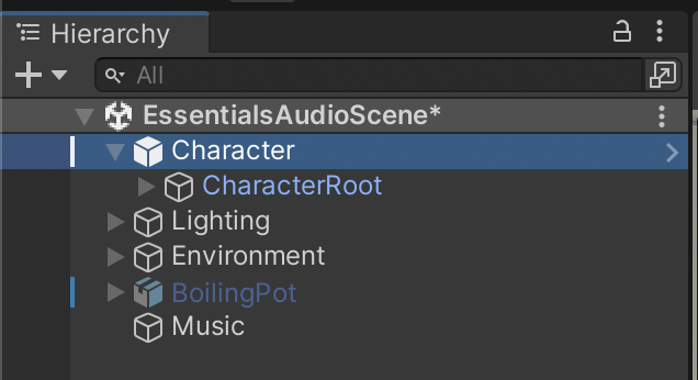 3. Enter Play mode to test your changes. Experiment with rolloff to make the BoilingPot very loud, or barely audible when your Character is at a given distance.