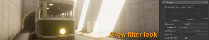 Overusing this features might backfire as seen at the sample where there are lots of high intensity pixels while the threshold of the intensity started to bloom very early (Threshold Gamma 1.0 means anything above value of 1.0 in current exposure will bloom intensely) Selecting the value of the threshold depends on the specific values of your emissive surfaces, the lighting setup for the Scene, and whether you have enabled eye adaptation.