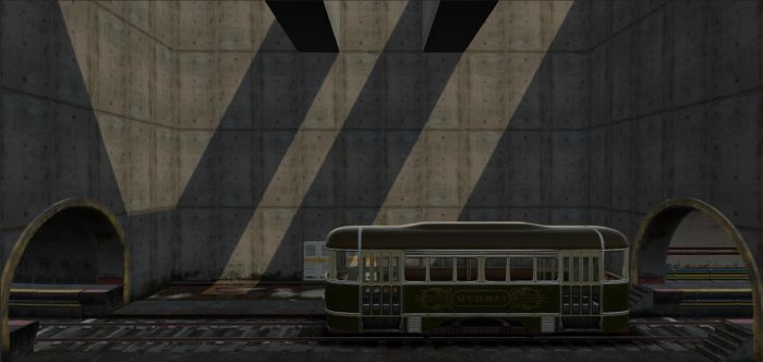 - Fake Shadows or occlusion based on assumptions. If certain assumptions can be made for an object, there are tricks that can be used to improve visual quality. In this sample shown below, the tram is expected to be always on rail and in order to help its ground light occlusion in shaded area, a simple multiply transparent material plane is placed.