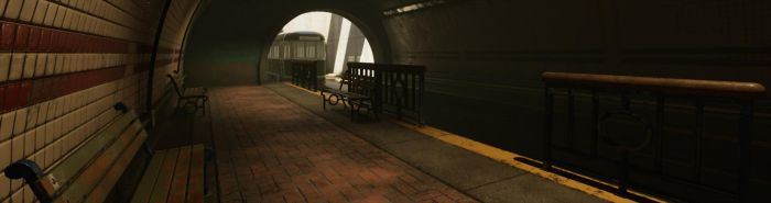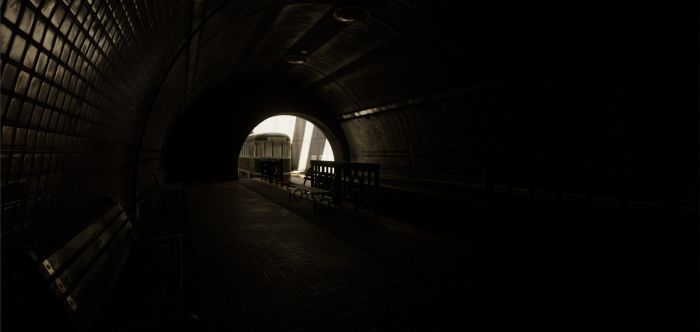 The Scene is now dark after the Scene finished generating lighting. To make matters worse, some elements of the Scene are out of place (Notice the Tram and the door on the background). The static objects in the Scene currently have proper occlusion for hemisphere and indirect bounce response from the directional light, however the rest of the object lack a of proper lighting setup.