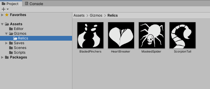 2. Inside the Gizmos folder, create a folder called Relics.