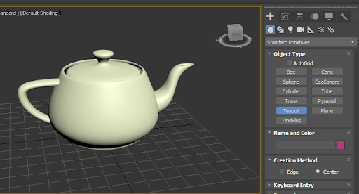 - In the new Scene, select the Teapot Object Type and create a teapot in the center of the Scene by clicking and dragging (Figure 01).