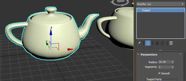 - For the LOD2 teapot, change the segments to 1 (Figure 06).