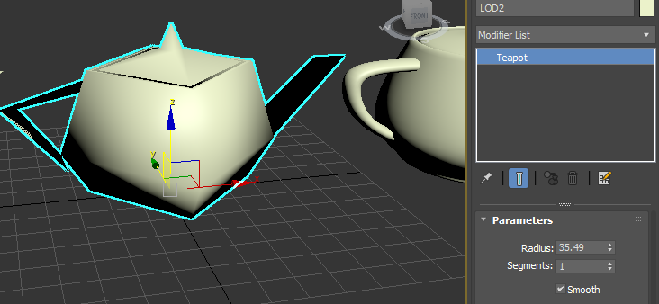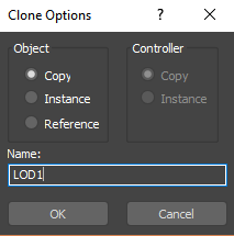 - Name this teapot LOD1 and make sure it is set to Copy.