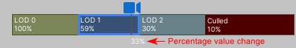 11. Adjust each group’s percentage value by dragging the vertical lines between the bars left or right. The percentages listed in the bars determine what level is active when the camera nears the object. (Figure 10)