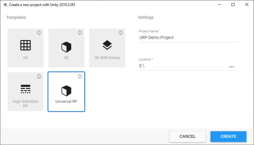 2. Creating a new project with URP