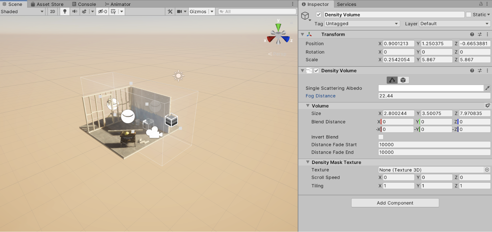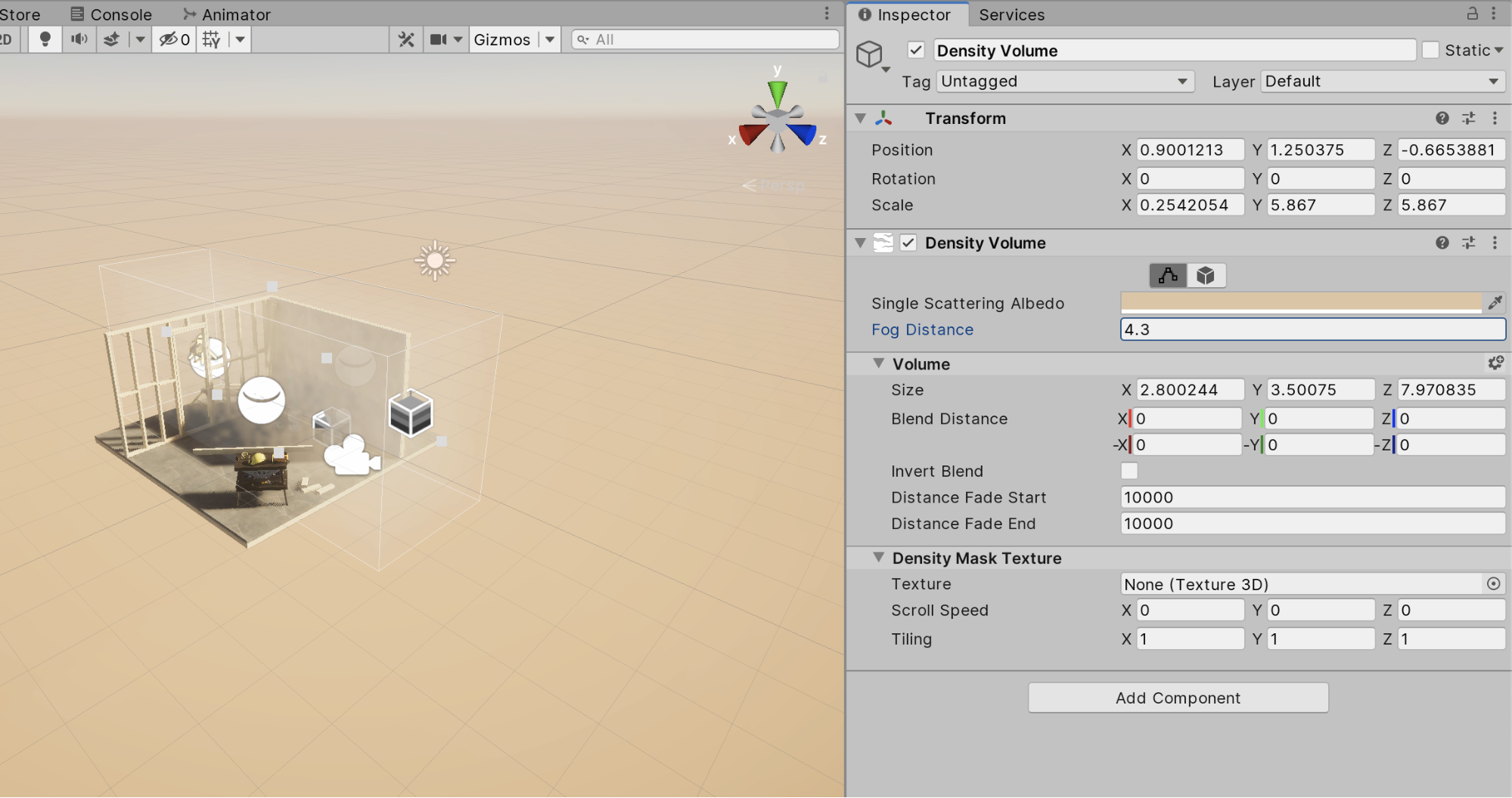 2. Move the volume and adjust the size property so that it covers the entire area that you want affected by fog.