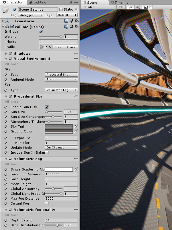 This will create a new object and a new settings profile with some default settings you’ll be able to configure to use Volumetric Fog.