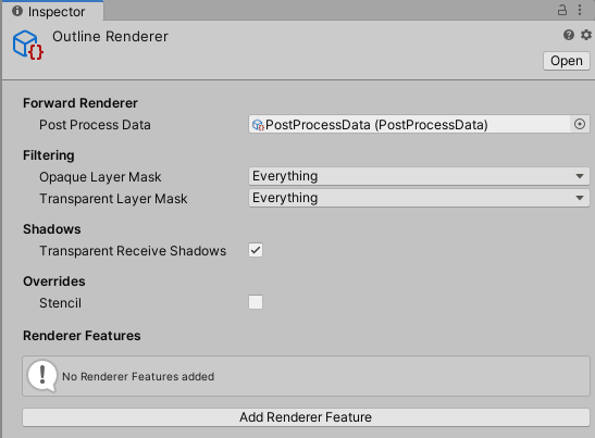 6. To extend our custom Forward Renderer with a new render pass, click it and navigate to the Inspector.