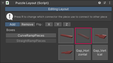 4. In the Inspector window, find the PuzzleLayout component. This will enable you to choose puzzle pieces to use in your level and snap them together.