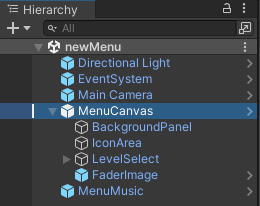 4. In the Hierarchy window, select the object called MenuCanvas.