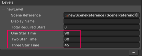 5. Finally, select times for the three Star Time fields in seconds. The faster players complete a level, the more stars they should receive: your Three Star Time should have the lowest value, and One Star Time the highest.