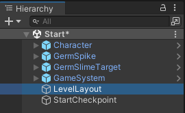2. In the Hierarchy window, select the LevelLayout GameObject.