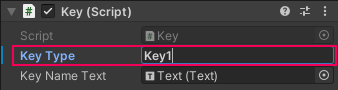 3. In the Inspector, find the Key component. In the Key Type field, give your key a unique name.