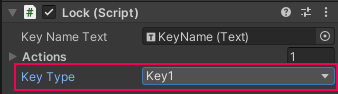 5. In the Inspector, find its Lock component. Set the Key Type value to your chosen key name, using the drop-down menu.