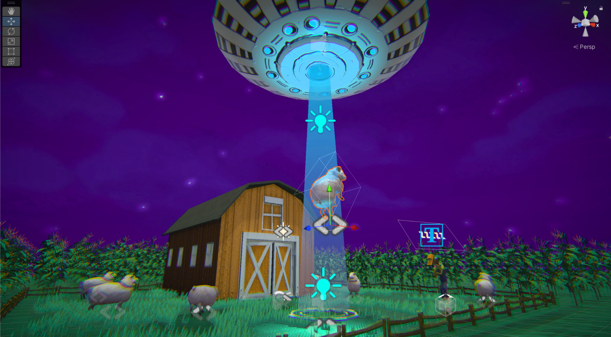 You’ve started the work of adapting the UFO game for your AR port, but there’s still one more key part of functionality to adjust: the game still uses the Spacebar key for abducting sheep, which will not work for mobile AR.