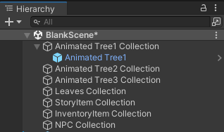 It will be automatically added to the Animated Tree1 Collection container GameObject: