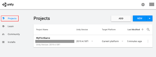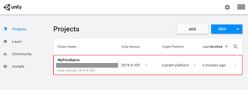 Microgame を閉じてしまった場合は、Unity Hub で開き直してください: