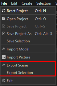 There are two primary ways to export a model from PiXYZ Studio: either from File, the Menu Bar, (Figure 01), or the Export button from the Toolbar. (Figure 02)