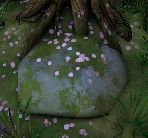 Currently, decals are used to show cherry blossom leaves on the ground in the scene.