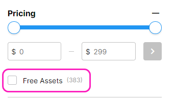 2. Use the checkbox on the right of the store screen to view only the free assets.