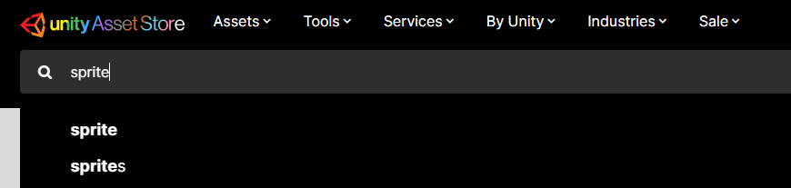 1. In the Asset store search tab, type “sprite” to search for available Sprite assets. All assets with the tag of “Sprite” appear.
