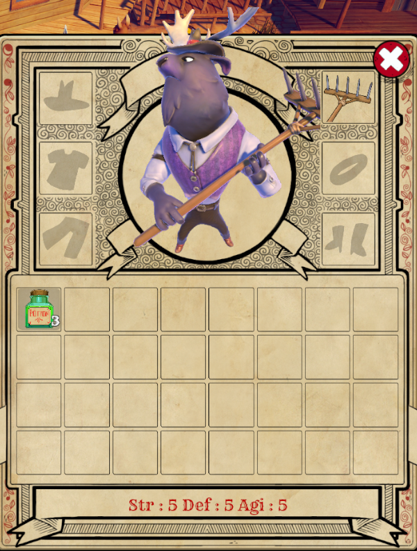 • Review equipment and inventory items (hover the mouse over them to reveal more details)