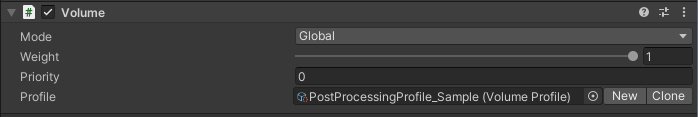 3. Volume コンポーネントで、オブジェクトピッカーを使用して、Profile の PostProcessingProfile_Sample を選択します。