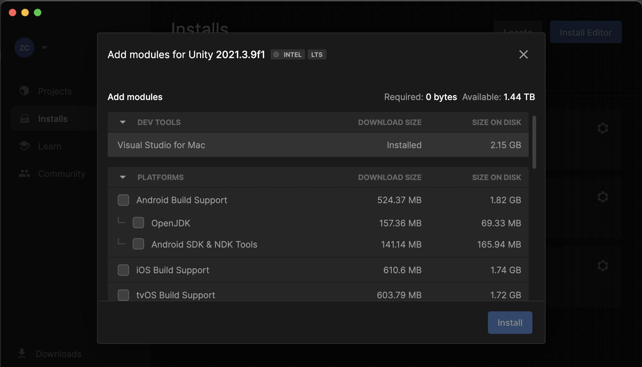 Visual Studio is installed during the initial Unity installation, but if it is not on your machine you can use the steps below to install it. This tutorial is based on Visual Studio.