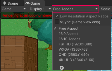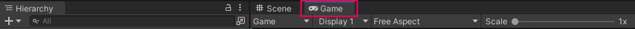 1. In the Scene view, select the Game tab.