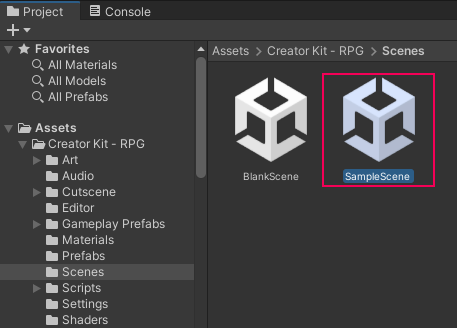 1. In the Project window, go to Assets/Creator Kit - RPG/Scenes.