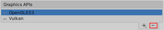 8. Select the Graphics APIs Add (+) button and select Vulkan.