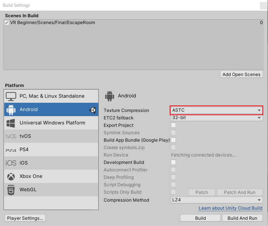 3. Set Texture Compression to ASTC using the drop-down menu.