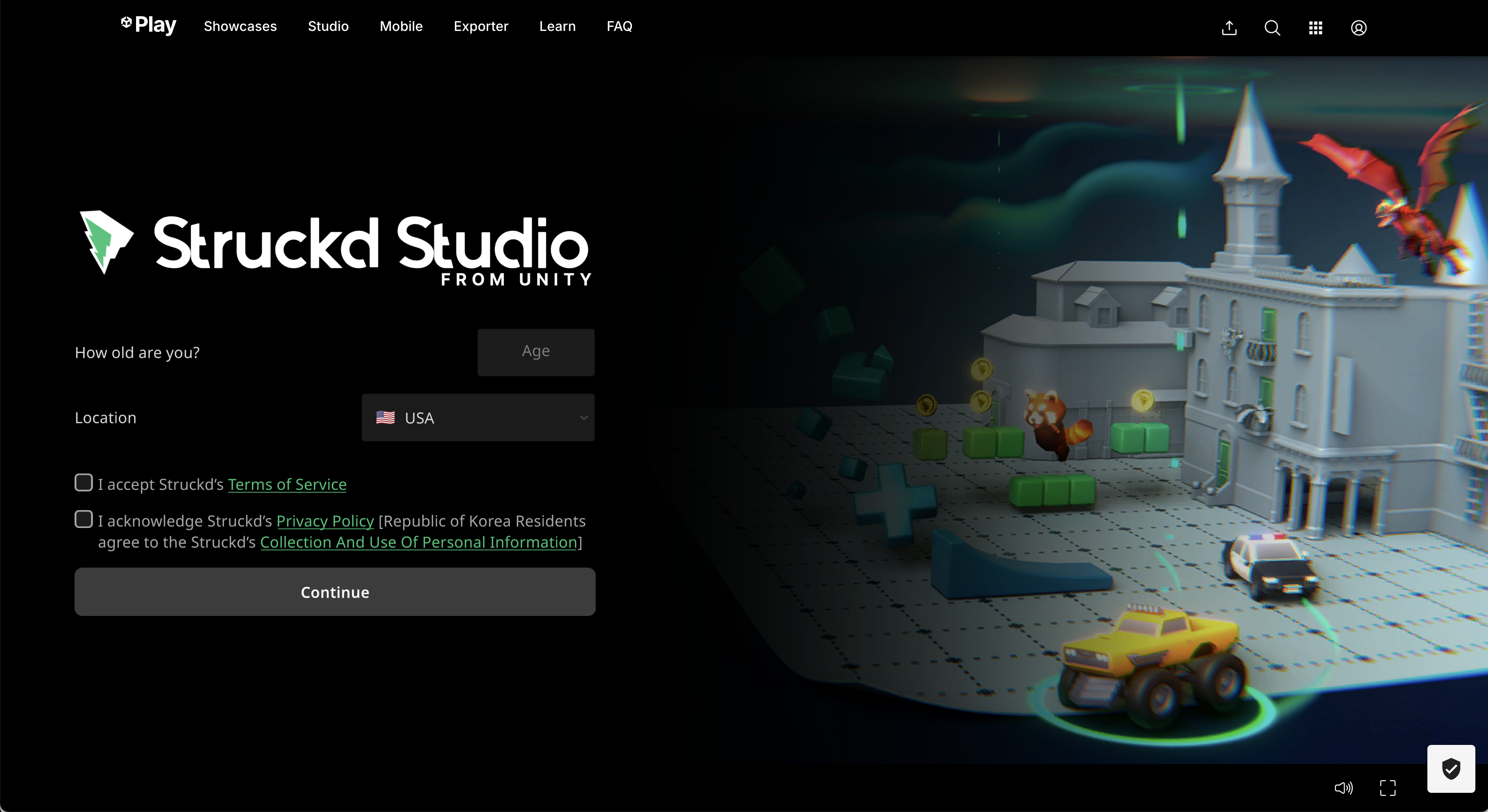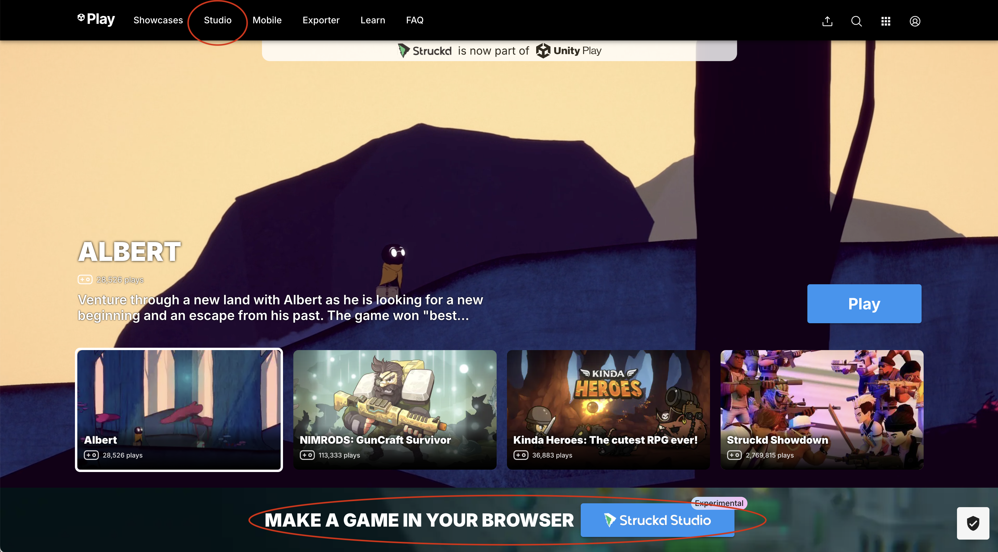 Go to https://play.unity.com and access Struckd Studio in two different ways -