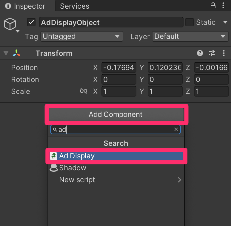 1. Add the Ad Display component to your AdDisplayObject GameObject.