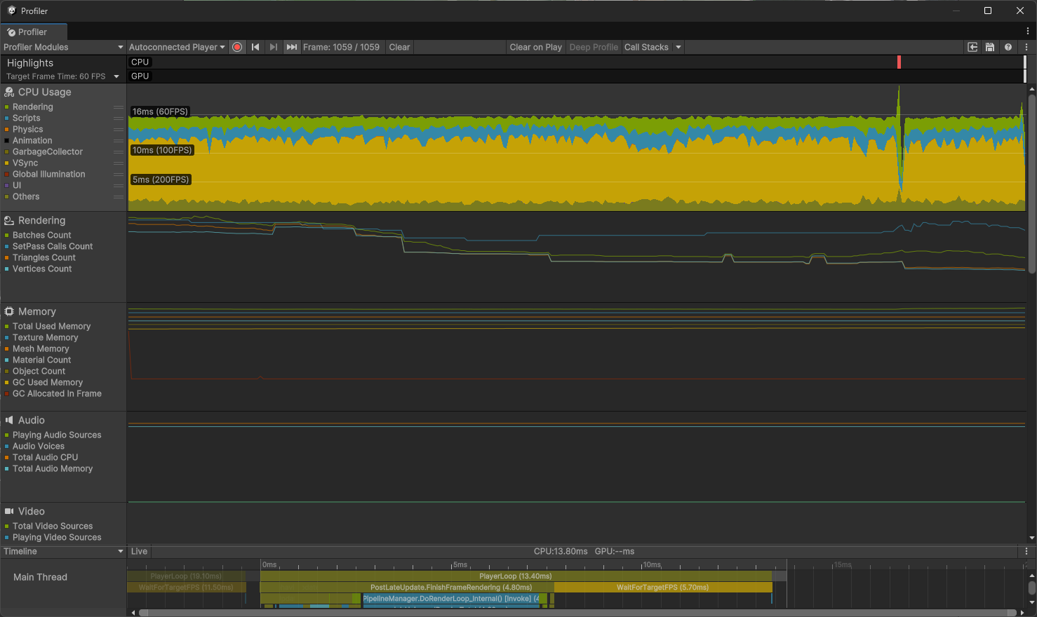• The Unity Profiler, which needs to be started in Autoconnect mode.